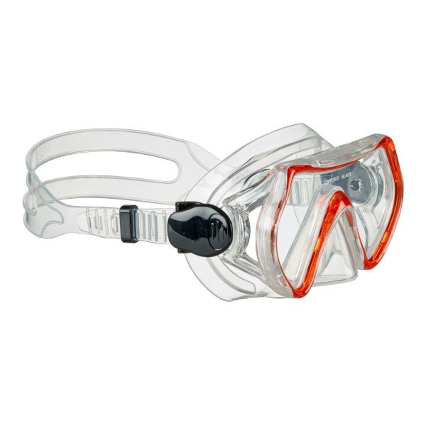 BECO Livorno dykmask i rött utmärker sig med sin iögonfallande design som gör den lätt att hitta bland annan utrustning. Färgen tilltalar barn och ger dem en känsla av att äga något unikt och speciellt.