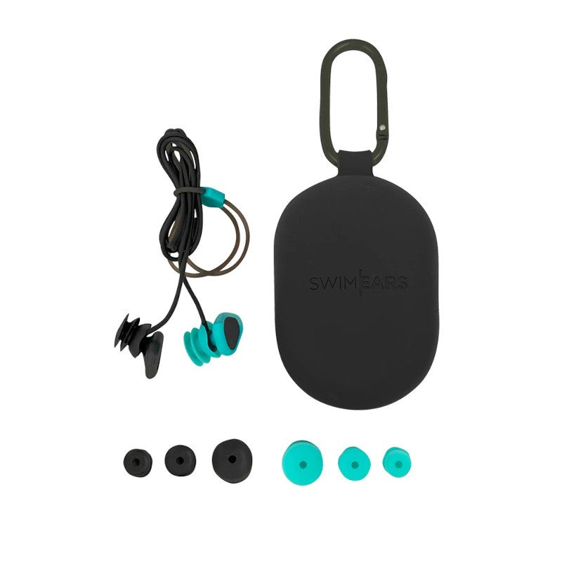 - Ett par SwimEars, förmonterade med kärnor, medelstora geler och en justerbar snodd