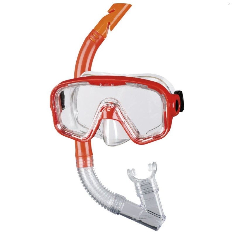 BECO Bahia mask-snorkelset för barn med dubbelt pannband för alla barn/ungdomar från 12 år. Finns i rött eller blått