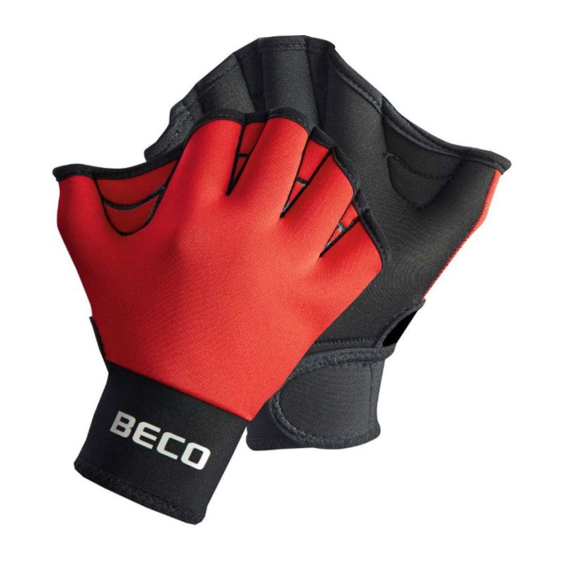 BECOs "AquaHandschuhe" är en simhandske som är speciellt utformad för vattenfitness och simträning. Handsken har "simhud" mellan fingrarna, vilket ger ökad vattenresistens och därmed en ökad effekt av rörelserna i vatten. Handsken har en justerbar kardborreknäppning, vilket säkerställer en bra passform. Handsken är tillverkad av mjukt och flexibelt neopren, vilket kännetecknas av att vara snabbtorkande, klorresistent och mycket slitstarkt.