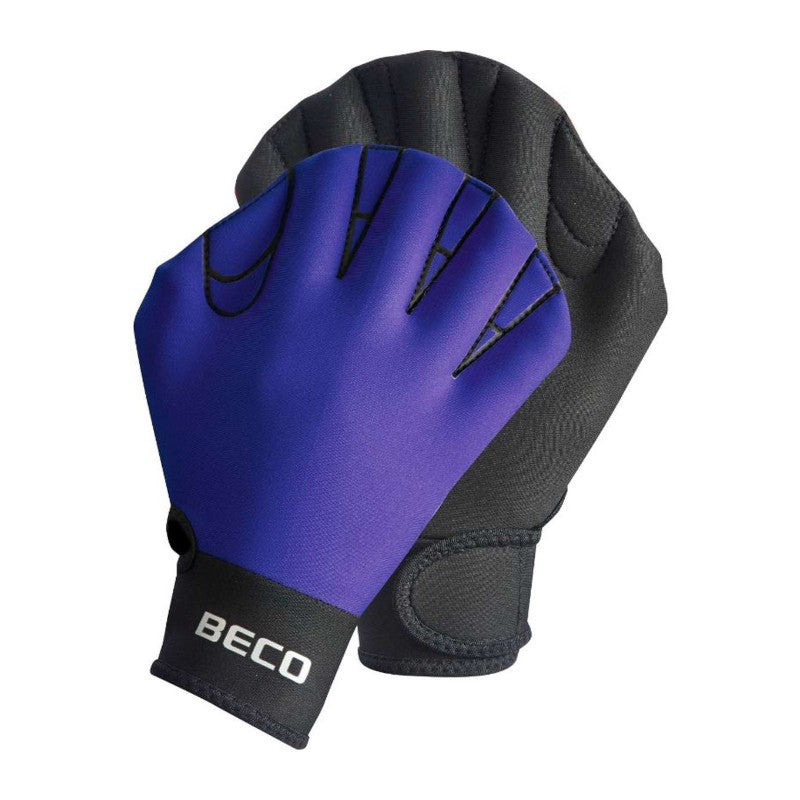 BECOs "AquaHandschuhe" är en simhandske som är speciellt utformad för vattenfitness och simträning. Handsken har "simhud" mellan fingrarna, vilket ger ökad vattenresistens och därmed en ökad effekt av rörelserna i vatten. Handsken har en justerbar kardborreknäppning, vilket säkerställer en bra passform. Handsken är tillverkad av mjukt och flexibelt neopren, vilket kännetecknas av att vara snabbtorkande, klorresistent och mycket slitstarkt.